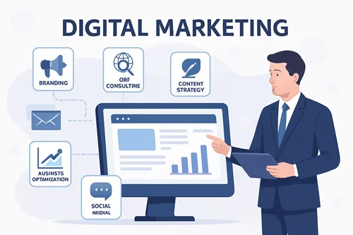 در دنیای امروز، دیجیتال مارکتینگ تنها یک گزینه نیست، بلکه یک ضرورت است. در شرکت کهن سیستم فردا، ما با ارائهی خدمات جامع دیجیتال مارکتینگ، از برندینگ تا بهینهسازی کسبوکار، به شما کمک میکنیم تا در فضای رقابتی آنلاین بدرخشید. از طراحی سایتهای جذاب و کاربرپسند تا استراتژیهای محتوایی هدفمند و مدیریت حرفهای شبکههای اجتماعی، هر مرحله از سفر دیجیتال شما را با دقت و تخصص همراهی میکنیم. با سئوی قدرتمند و راهحلهای نوآورانهی ما، کسبوکار شما نهتنها دیده میشود، بلکه متمایز میشود.
